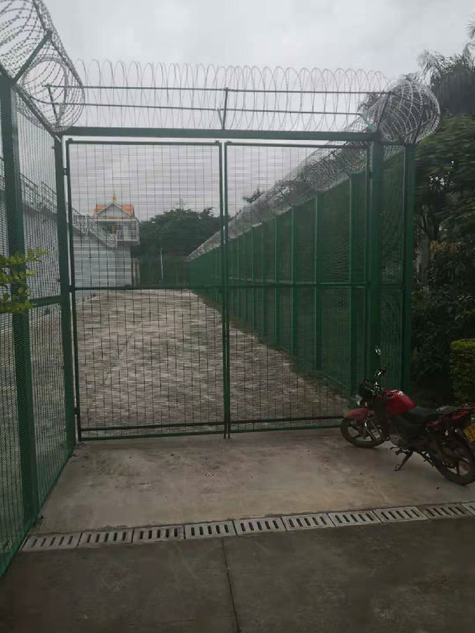 監(jiān)獄外圍墻需要安裝一種防攀爬得圍欄,這種鐵絲網一般是直接安裝在地面上,高度可達四到五米高,頂部加上放上一圈又一圈的刺絲滾籠。部署上的這種護欄防護網*好采用密目防爬網,這種防爬網又叫358安全圍欄,它的網孔是極小的,人的手指都伸不進去,導致無法借力攀爬,犯罪份子想翻墻而過的話也是干瞪眼。