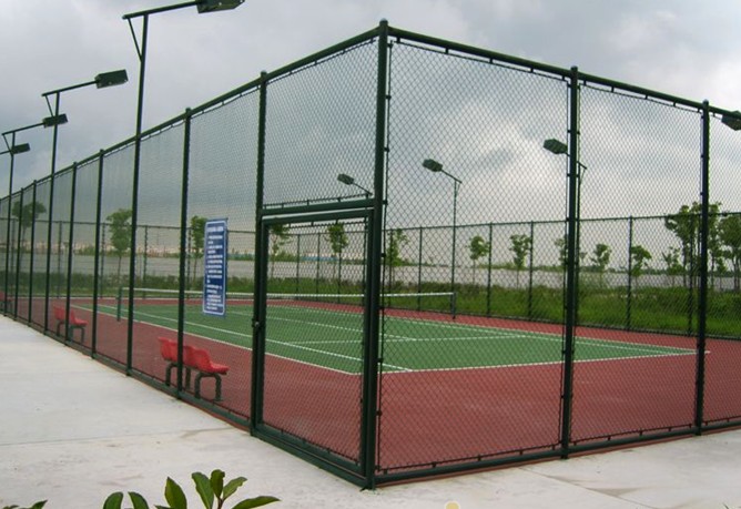 邊框能夠挑選兩種方法拉緊勾花網,一種為直接用PVC包塑絲直接環繞來固定勾花網,另一種為邊框焊接u型卡,勾花網經過8cm的鋼筋棍來拉緊勾花網,鋼筋棍在U型卡用螺絲固定,兩種方法可到達球場護欄網的彈性力,價格直接環繞的要廉價。