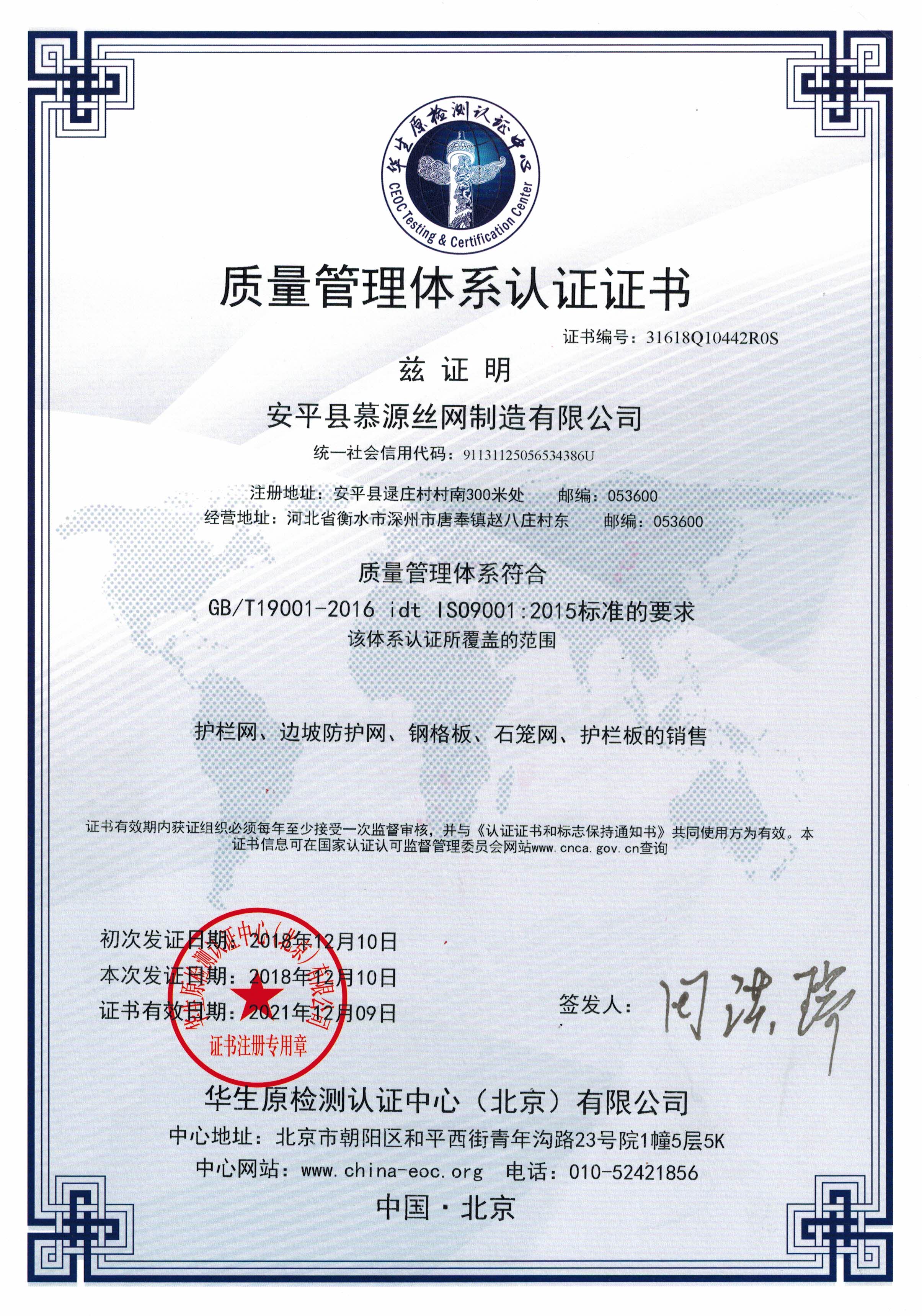 安平縣慕源絲網(wǎng)制造有限公司是一家生產(chǎn)、銷售、安裝為一體的實力生產(chǎn)廠家,專業(yè)生產(chǎn)護(hù)欄網(wǎng)、圍欄網(wǎng)、隔離網(wǎng)、防護(hù)網(wǎng)等鐵絲網(wǎng)圍欄產(chǎn)品。我公司業(yè)績資質(zhì)*,可授權(quán)參與施工單位投標(biāo)。出廠檢測報告合格證隨貨同行,請廣大施工單位放心采購。