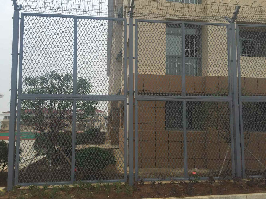看守所鍍鋅鋼網(wǎng)墻、看守所浸塑鋼網(wǎng)墻,監(jiān)獄看守所防攀爬圍網(wǎng)網(wǎng)片一般都采用邊框型,這樣的生產(chǎn)形勢也是為了增加網(wǎng)片的牢固度,網(wǎng)孔可以焊接成正方形、長方形,也可以焊接成菱形,也可以直接采用刀片刺繩焊接網(wǎng)或鋼板網(wǎng)材料的網(wǎng)片,然后在網(wǎng)片的基礎(chǔ)上四周焊接邊框,防腐進(jìn)行pvc浸塑或噴塑處理。頂端安裝刀片刺繩,刀片刺繩擁有鋒利的刀片,手不能握,可以有效的阻止非法分子的攀爬,從而使監(jiān)獄鋼網(wǎng)墻從外形上邊就可以起到震撼的作用。