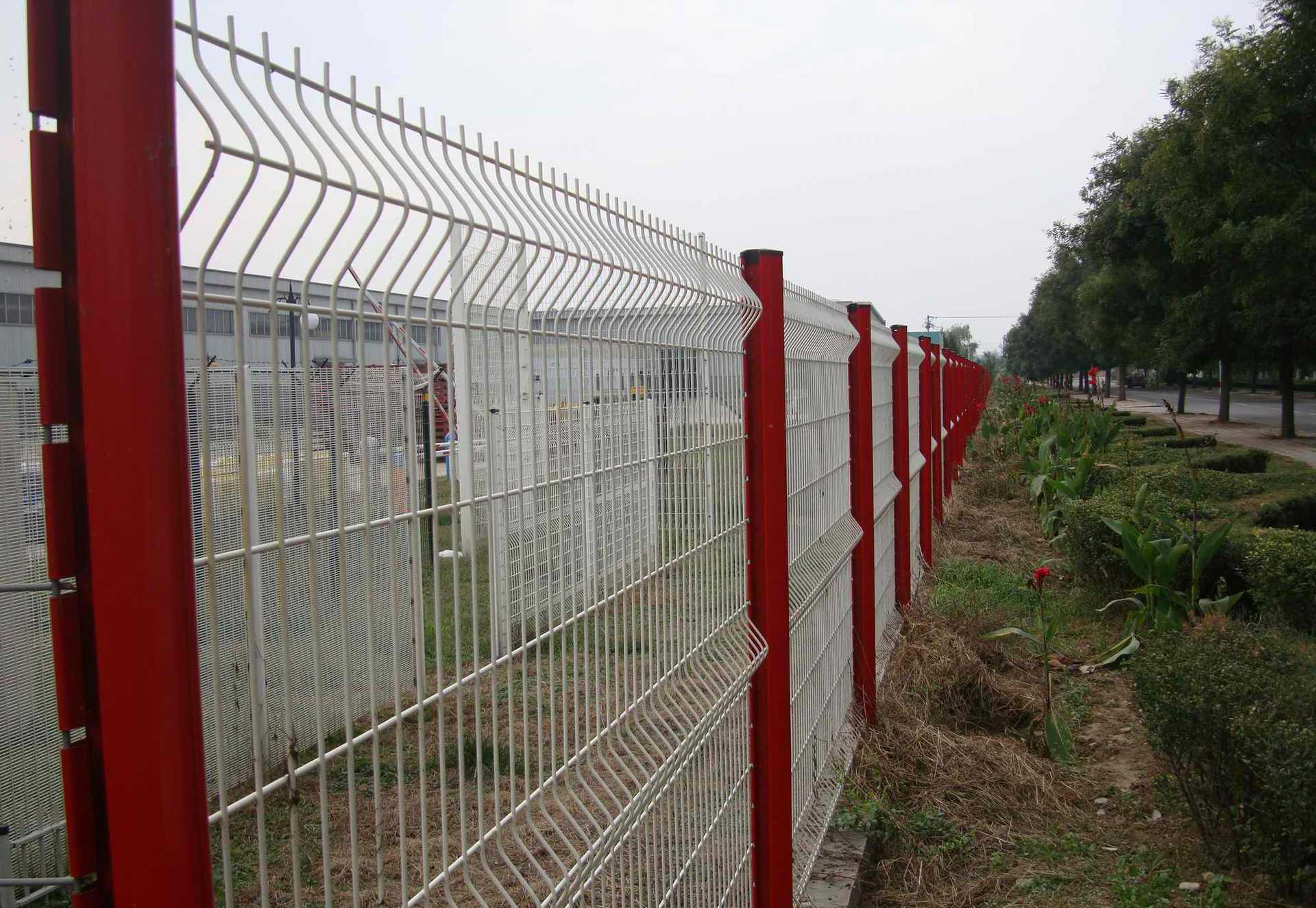 加強(qiáng)筋 四道 網(wǎng)格:50X50mm 可根據(jù)客戶要求定做。結(jié)構(gòu):用高強(qiáng)度冷拔絲與低碳鋼絲焊接后經(jīng)過(guò)液壓成型,用鏈接附件與鋼管支柱固定。特點(diǎn):強(qiáng)度高,鋼性好,造型美觀,視野寬廣,安裝簡(jiǎn)便,感覺(jué)明亮,輕松。三角折彎護(hù)欄網(wǎng)優(yōu)點(diǎn)合適的折彎,造就了此種產(chǎn)品獨(dú)有的美觀效果,而且表面采用多種 顏色的浸塑處理,如黃色,綠色,紅色,立柱與網(wǎng)片不同顏色的搭配更是令人賞心悅目,同時(shí)此種產(chǎn)品多采用帶底盤(pán)立柱,安裝只需打好膨脹螺栓,非常的快捷。適用場(chǎng)合鐵路封閉網(wǎng)、生活區(qū)圍欄、場(chǎng)區(qū)圍網(wǎng)、開(kāi)發(fā)區(qū)隔離網(wǎng)等等。